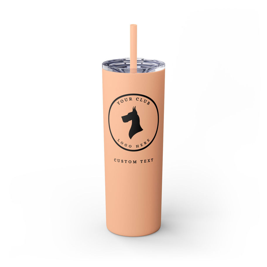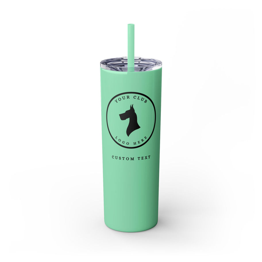 A slim, stainless steel 20oz tumbler designed to move with you—whether it’s a quick commute, a long training ride, or a weekend at the barn. The tapered, double-wall body keeps drinks cold for up to 24 hours and hot for 12, and the clear press-on lid with a color-matching straw makes sipping simple and spill-conscious on the go. Its clean white matte or glossy exterior showcases bold, crisp printing that allows logos and custom text to stand out with sharp contrast. Lightweight, BPA-free, and finished with a non-condensing surface, this tumbler feels secure in your hand and slides easily into most cup holders.